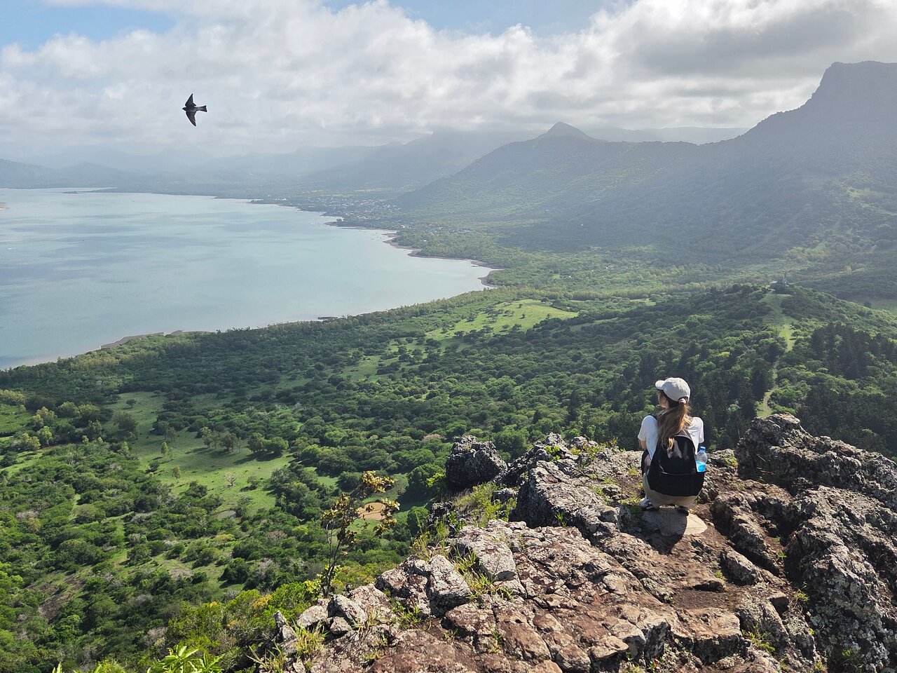 Arrivés au point de vue, vous serez récompensés par une vue panoramique spectaculaire sur les lagons turquoise de la côte ouest, les montagnes du sud, et les reliefs sauvages qui entourent Le Morne.